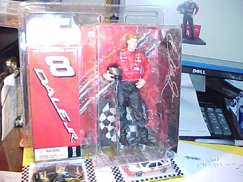 McFarlane * Dale Earnhardt, Jr. * Series 3 Adult Collector Limited Editoin (HOBBY) No Hat & No Sunglasses. Red Shirt & Black Pants with red&white Stipie down the outside of each pant leg, holding a silver crash helmet with Dale Jr above sun visor.